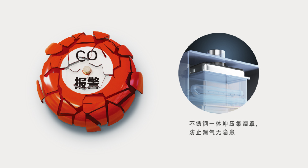 燃烧状态始终控制在充分燃烧状态,事先防止一氧化碳超标,无需报警。不锈钢一体冲压集烟罩,整体冲压成型,耐腐蚀,防漏气。不受外界环境影响,始终有效防御,寿命与壁挂炉相同,无需多次更换。