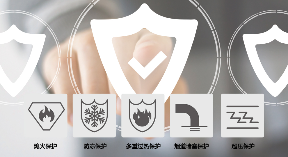设置有多重过热保护,熄火保护,烟道堵塞保护,超压保护,防冻保护等安全保护装置,同时采用强制给排气系统,消除对室内空气的影响。